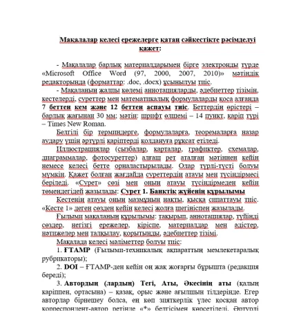 Мақалаға қойылатын талаптар! Скачать файл: Мақалаға қойылатын талаптар.docx Посмотреть онлайн файл: Мақалаға қойылатын талаптар.docx